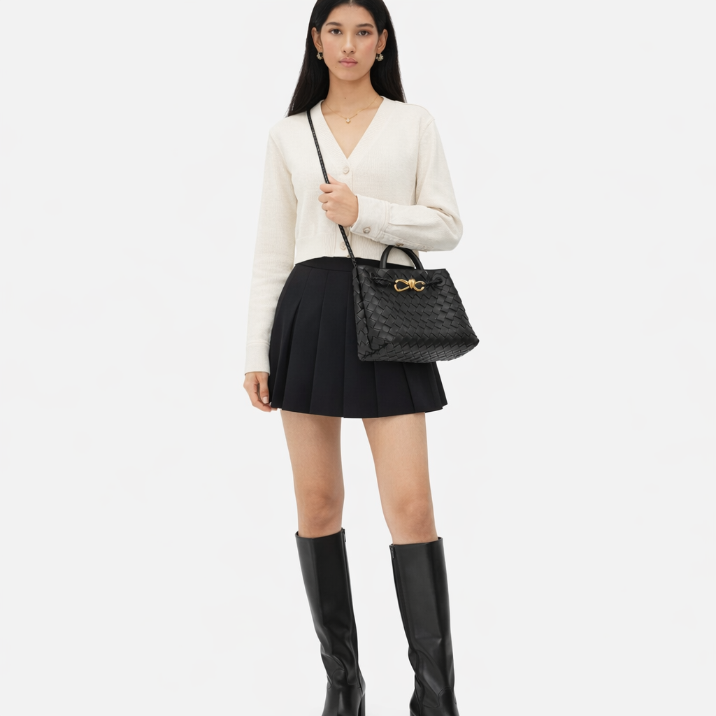 Lioréa steht für ruhige Eleganz und moderne Vielseitigkeit. Das weich geflochtene Leder, kombiniert mit einem markanten Knotendetail, verleiht der Tasche eine zeitlose Boutique-Ausstrahlung. Ob in der Hand, über der Schulter oder crossbody getragen – Lioréa passt sich deinem Stil mühelos an.